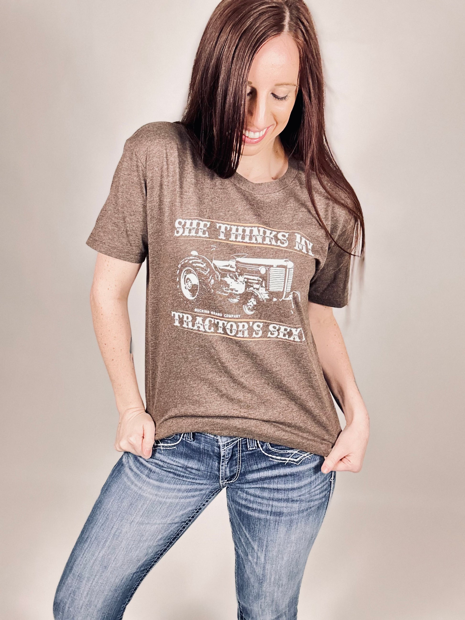 ‘She Thinks My Tractors Sexy’ Brown Tee